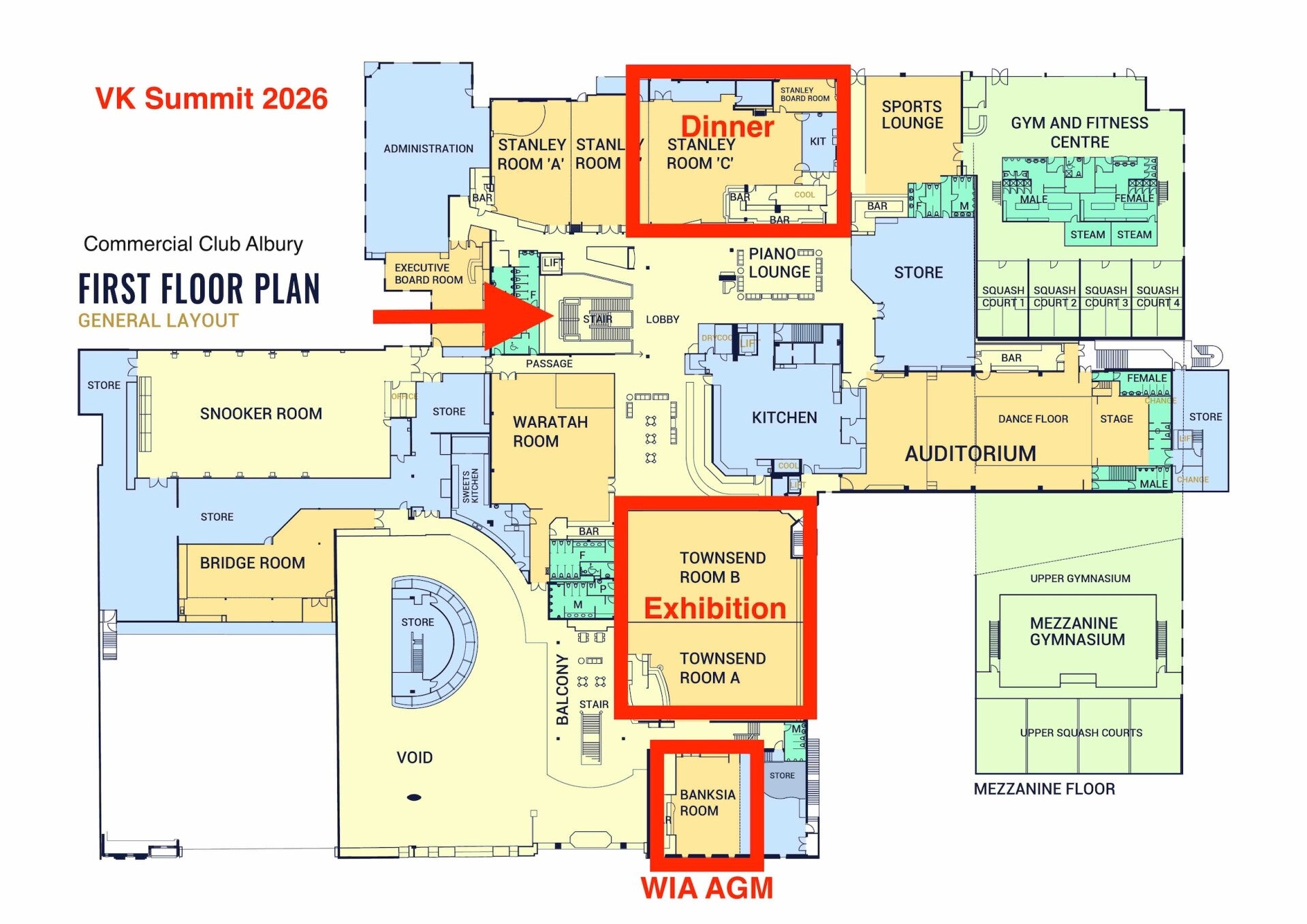 Enter from the multi storey (free) car park through the Elizabeth street entrance, take the main stairs to the first floor where VK Summit is taking place.